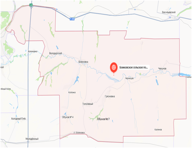 хутор Божковка (центр), хутор Володарский, хутор Чернецов, хутор Грязновка, поселок Колонка, поселок Тополевый, станция Божковка, хутор Обухов № 4, хутор Обухов № 7, хутор Калинов, хутор Чекунов |