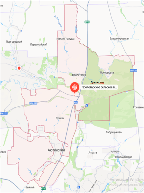 хутор Пролетарка (центр), поселок Донлесхоз, хутор Малая Гнилуша, село Прохоровка, хутор Пушкин, сад Ивушка, 994 км М4 «Дон»